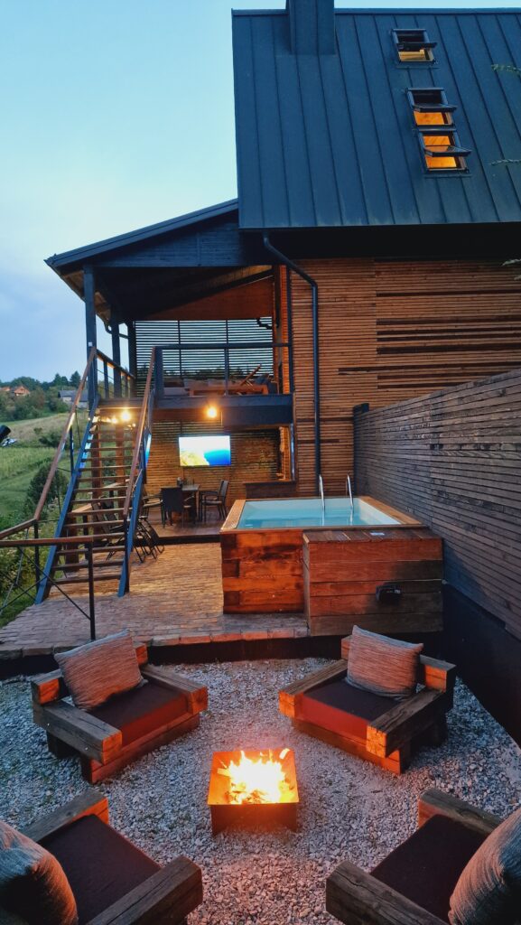 Uz panoramski pogled s prostranih i udobnih terasa, Deck 55 nudi brojne pogodnosti koje će vaš boravak učiniti posebnim. Uživajte u privatnom bazenu, sauni i jacuzziju, idealnim za opuštanje u bilo koje doba godine. Bilo da se želite rashladiti tijekom ljetnih dana ili uživati u zimskim večerima, ova kuća pruža sve što vam treba za nezaboravan odmor, a sve to na samo 15 minuta od Zagreba.